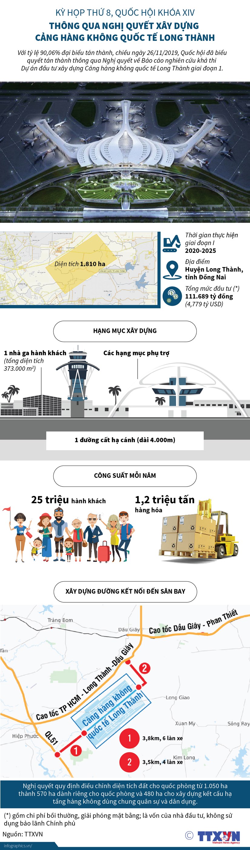 Với tỷ lệ 90,06% đại biểu tán thành, chiều 26/11, Quốc hội đã biểu quyết tán thành thông qua Nghị quyết về Báo cáo nghiên cứu khả thi Dự án đầu tư xây dựng Cảng hàng không quốc tế Long Thành giai đoạn 1.