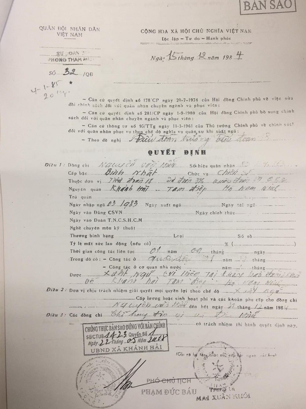 | Quyết định xuất ngũ của ông Nguyễn Văn Hữu |