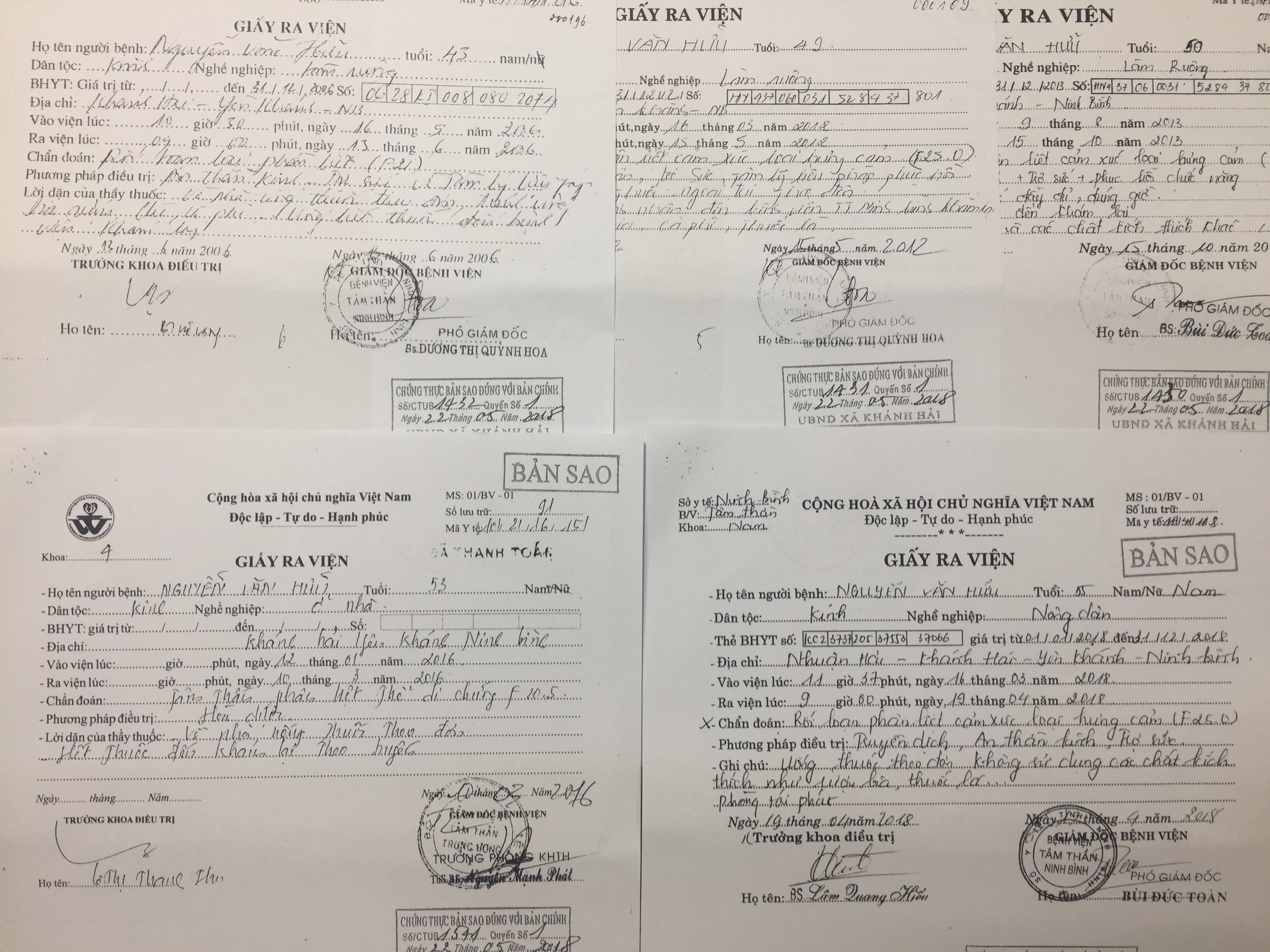 Căn bệnh này nó đã đeo bám ông Hữu suốt từ ngày đó đến nay. Thi thoảng ông lại phải vào nhập Viện Tâm thân Trung Ương và Viện Tâm thần tỉnh Ninh Bình để điều trị, dẫn đến cuộc sống kinh tế gia đình rất khó khăn.