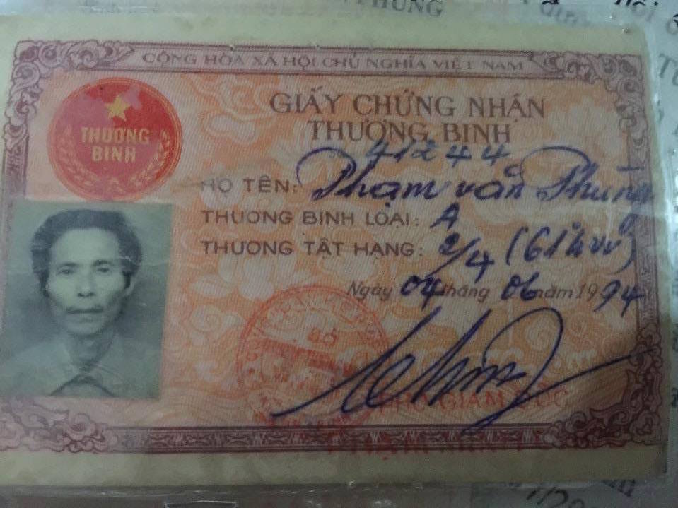 Thẻ thương binh 2/4 của ông Phùng.