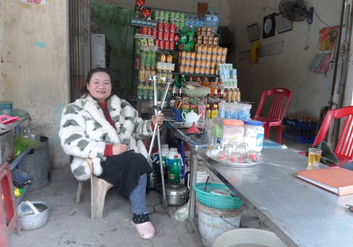 | Chị Vũ Thị Lan, Chủ tịch Hội Người khuyết tật tỉnh Nam Định bên quán nước trước cửa nhà riêng cũng là “trụ sở” làm việc - Ảnh Hồ Thanh