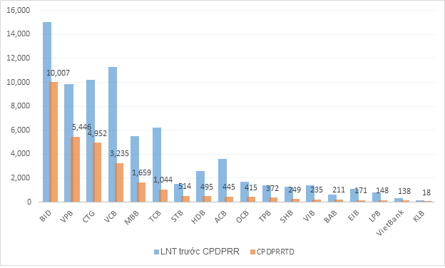 Một trong những ngân hàng lớn nhất Việt Nam là BIDV (BID) khi lợi nhuận thuần trước dự phòng 6 tháng đầu năm tăng tới 50% và đạt hơn 15,000 tỷ đồng, nhưng chi phí dự phòng chiếm hơn 10,000 tỷ đồng đã "ăn mòn" 67% lợi nhuận. Trong nửa đầu năm, BID dùng hơn 9,900 tỷ đồng dự phòng để xử lý rủi ro tín dụng trong khi cùng kỳ năm trước chỉ khoảng 2,260 tỷ đồng.
