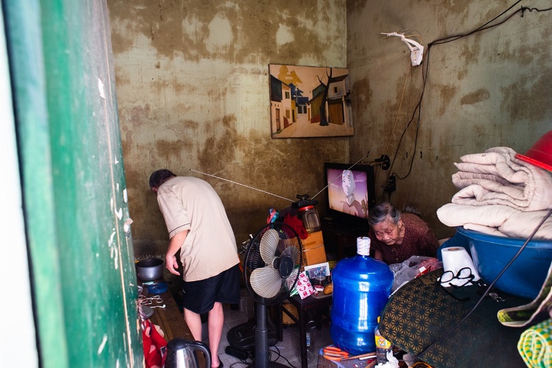 Ngôi nhà thuê của bà Nga chỉ vỏn vẹn 10m2 đã xuống cấp, chất đầy đồ đạc cũ kỹ, bức tường đã hoen ố nhuốm màu thời gian. (Ảnh: Sưu tầm)