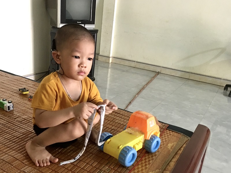 Tuy nhiên, khi con được một vài tháng tuổi, chị bắt đầu nhận thấy những bất thường của con. “Khi đó, mình gọi nhưng con không ngoái lại hay cười đùa giống những đứa trẻ khác. Có lần con khóc, mình đứng ngay sau lưng vỗ tay tạo tiếng động cho con nghe thấy nhưng con cứ khóc mãi, chẳng có phản ứng gì lại. Hai vợ chồng liền cấp tốc đưa con đi khám”- Chị Huệ chia sẻ.