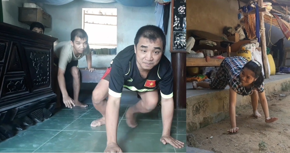 Từ đó, các con của bà Dần chỉ có thể di chuyển bằng cách bò bằng hai bàn tay và hai chân, không thể đi, đứng như mọi người được. Bởi vậy, đôi tay, chân và quần áo lúc nào cũng trong tình trạng lấm lem.