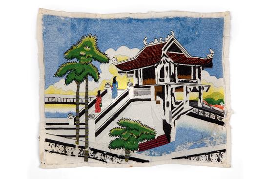 Bức tranh thêu “Chùa Một Cột”. Ảnh: Internet