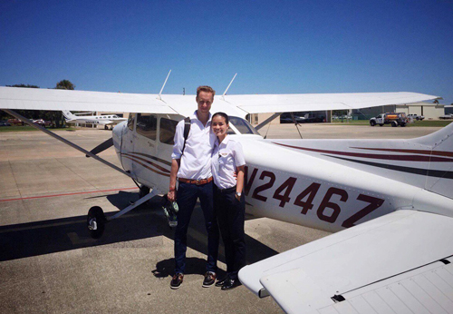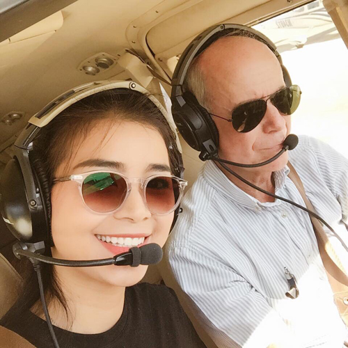 | Thúy trong một lần huấn luyện cùng với thầy của mình. Số tiền cô đầu tư cho học phi công khoảng 2,5 tỷ đồng. Ảnh: NVCC. |