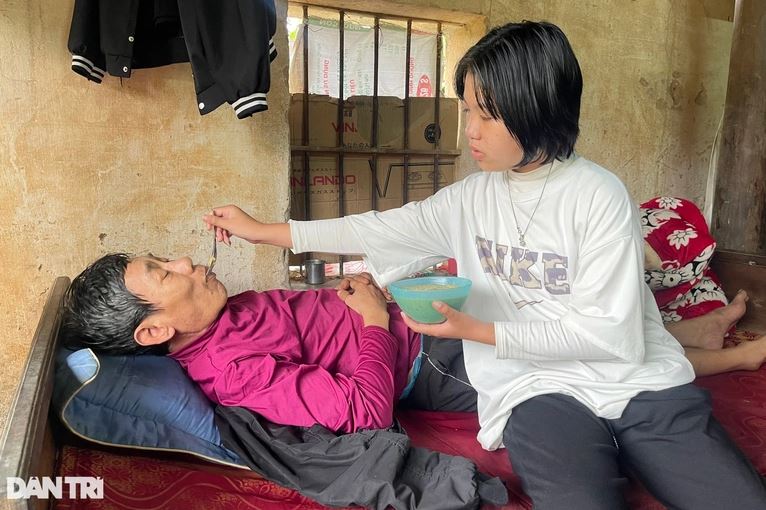 Hoa vừa học, vừa túc trực tại nhà chăm sóc bố (Ảnh: Dân trí)