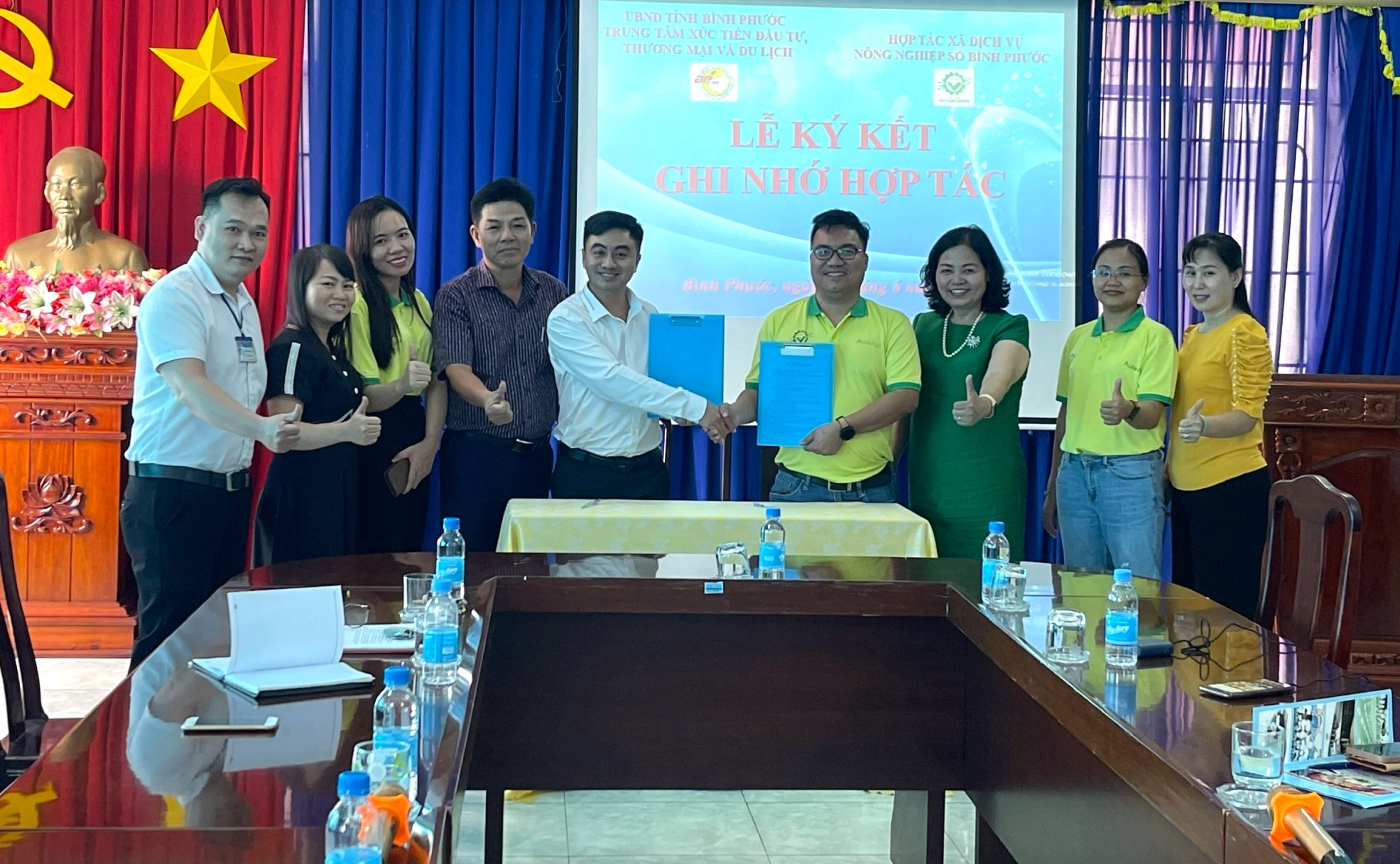 Dịp này, HTX đã ký kết biên bản ghi nhớ hợp tác (BBGNHT) với TT XTĐT,TM&DL tỉnh Bình Phước; qua đó, 2 bên sẽ phối hợp xây dựng chuỗi kết nối các hợp tác xã, nhà nông trong tỉnh với kênh thu mua cuối cùng, giảm bớt khâu trung gian, mang lại tính ổn định cho các sản phẩm của địa phương; từ đó góp phần xây dựng và phát triển thị trường trong và ngoài nước bền vững, ổn định cho nông sản.