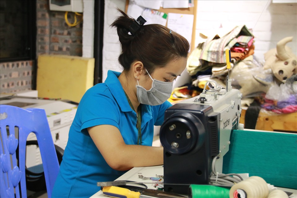 Xưởng may thú nhồi bông tạo việc làm cho hàng chục người khuyết tật. Ảnh: Kim Anh