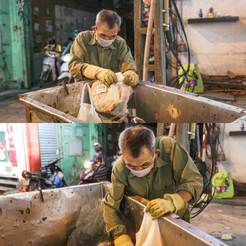 Cứ tầm 8h tối, ông đã có mặt trên đoạn đường Cầu Giấy quen thuộc. Bới rác đến 11h đêm, ông tìm lượn khắp quận cho đến tận 4h sáng. Ngày ngủ được nhiều thì 5 tiếng, ít thì 4 tiếng. Nhưng khi đồng hồ điểm 8h, ông Tài đã phải dậy để sửa soạn, ăn uống và đi làm. Cứ như vậy, ông lại bắt đầu cuộc hành trình 16 tiếng của mình từ 11h đến 4h sáng ngày hôm sau.