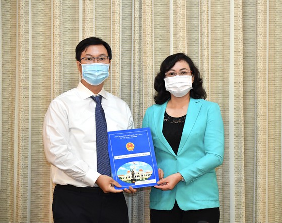 Phó Chủ tịch UBND TPHCM Phan Thị Thắng trao quyết định cho ông Vũ Chí Kiên. Ảnh: VIỆT DŨNG