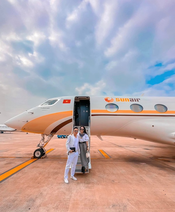 Vợ chồng doanh nhân Lưu Bích Nguyệt sử dụng dịch vụ bay xa xỉ trên chiếc chuyên cơ hiện đại nhất thế giới Gulfstream G650ER.
