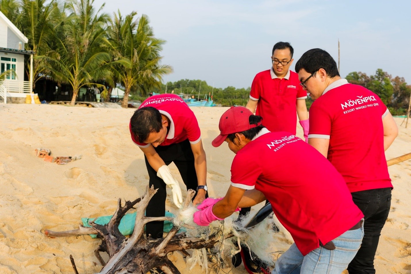Các thành viên của khu nghỉ dưỡng chung tay làm sạch môi trường biển.