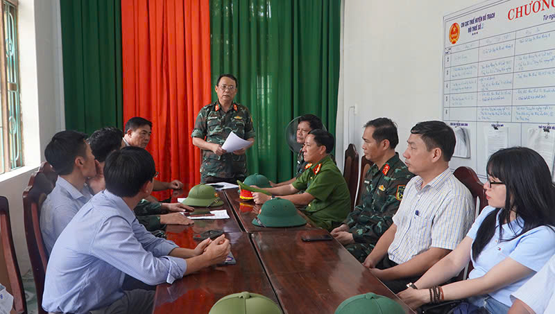 Lãnh đạo Bộ CHQS tỉnh và các lực lượng chức năng họp, thống nhất các nội dung kế hoạch trước vụ phá nổ