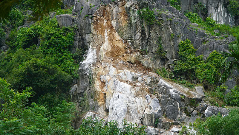 Khu vực núi đá tại tổ dân phố Xuân Tiến, thị trấn Phong Nha, huyện Quảng Trạch có địa hình hiểm trở, kết cấu địa chất phức tạp với nhiều vị trí rạn nứt.