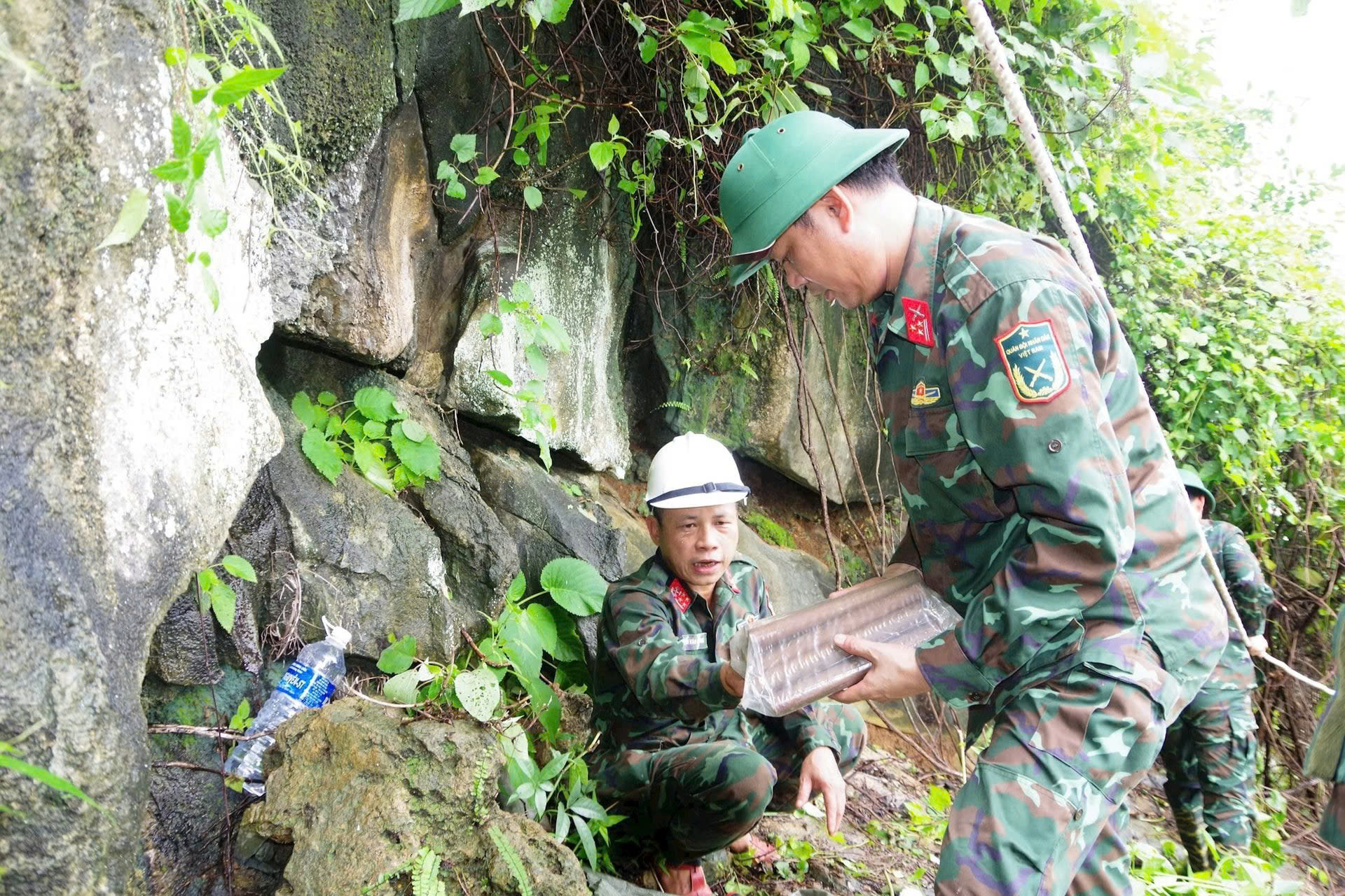 Đặt thuốc nổ để phá khối đá nặng 300 tấn có nguy cơ gây sạt lở ở thị trấn Phong Nha