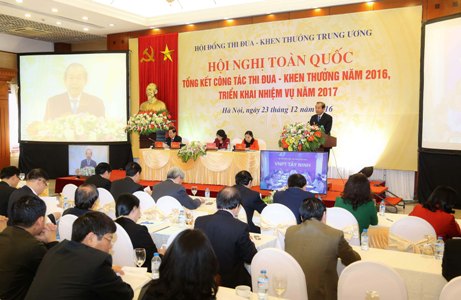 Sáng 23/12, tại Hà Nội, Hội đồng Thi đua - khen thưởng Trung ương đã tổ chức Hội nghị trực tuyến toàn quốc Tổng kết công tác thi đua-khen thưởng năm 2016, triển khai nhiệm vụ năm 2017.