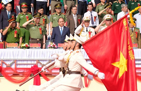 Kết thúc bài phát biểu, Thủ tướng nhấn mạnh rằng, dân tộc Việt Nam là một dân tộc anh hùng, sinh ra những người con làm công an anh dũng, kiên cường. “Trong chiến tranh, chúng ta dũng cảm, mưu trí, đánh thắng mọi thế lực thù địch, xâm lược. Trong thời bình, chúng ta bảo vệ luật pháp, bảo vệ an ninh chính trị và trật tự an toàn xã hội, bảo vệ tính mạng và tài sản, quyền và lợi ích hợp pháp của nhân dân, đem lại cuộc sống bình yên cho nhân dân”.