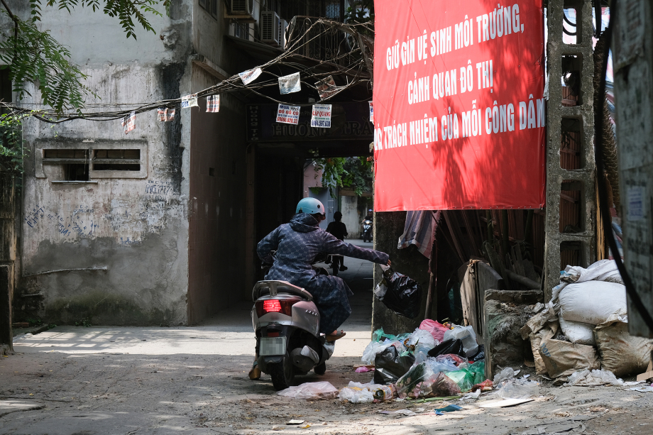 Tình hình cũng tương tự tại 23 phường của bốn quận được chọn thí điểm phân loại rác tại nguồn là Hoàn Kiếm, Ba Đình, Đống Đa, Hai Bà Trưng và Nam Từ Liêm (Hà Nội). Các thùng rác không được để trước nhà dân để tránh tập kết rác bừa bãi. Điều này cũng khuyến khích người dân phân loại rác tại nhà và đổ rác đúng giờ. Nhưng dù đã được tuyên truyền, vận động, nhiều người vẫn vứt rác ra đường. Chị Lê Thị Liên (sống ở ngõ Hòa Bình 2, phường Minh Khai, quận Hai Bà Trưng, Hà Nội) cho biết chị thường thấy người dân từ trong ngõ sâu đi xe máy vứt túi rác rồi chạy vụt đi. Để giữ môi trường kinh doanh sạch sẽ, chị thường xuyên phải dọn bãi rác đầu ngõ này.