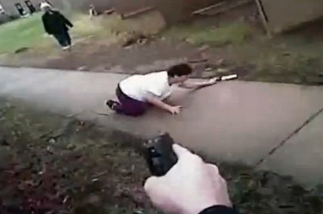 Đoạn video được sở cảnh sát North Carolina công bố từ máy quay gắn trên người viên sỹ quan, trong đó người này la hét và nổ súng vào bà Di, khi đó đang cầm trên tay con dao thái thịt.