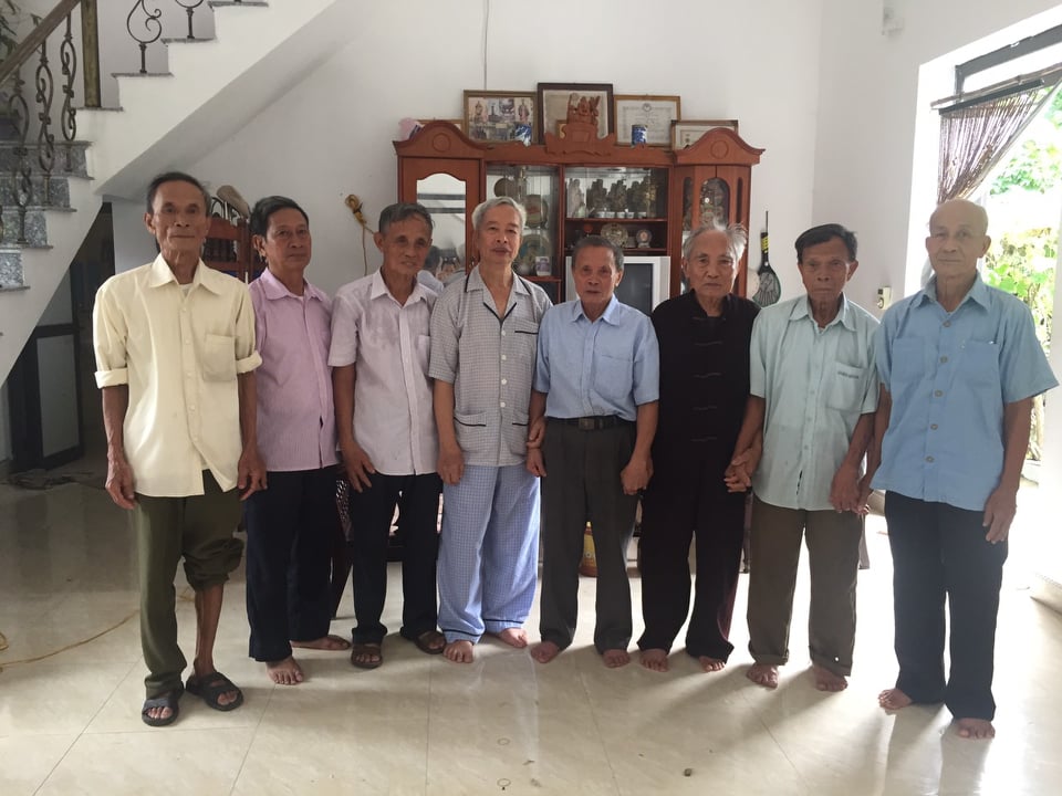 Thương binh ¾ Trần Văn Hiểu (đứng thứ ba từ trái sang) chụp ảnh lưu niệm cùng đồng đội cũ trong Hội đồng ngũ 13/9 xã Yên Trung (Ý Yên, Nam Định).