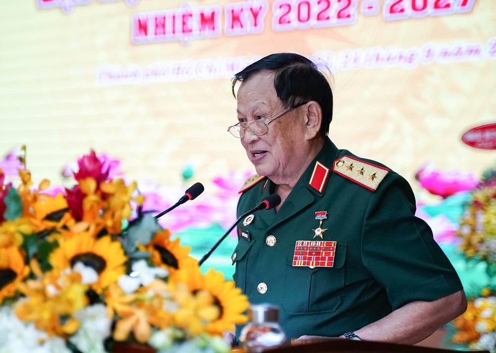 Thiếu tướng Nguyễn Minh Hoàng - Chủ tịch Hội Cựu chiến binh TP Hồ Chí Minh nhiệm kỳ 2017 - 2022 phát biểu.