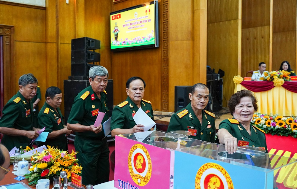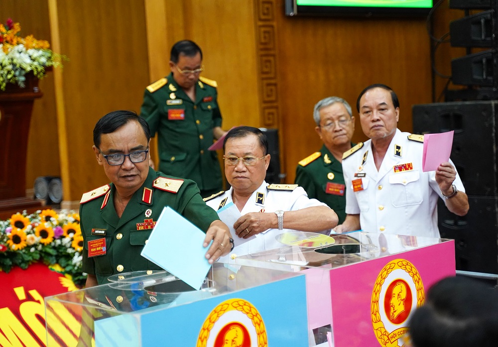 Đoàn đại biểu, các đại biểu tham dự tiến hành bỏ phiếu bầu cử Ban chấp hành Hội Cựu chiến binh TP Hồ Chí Minh nhiệm kỳ 2022 - 2027.