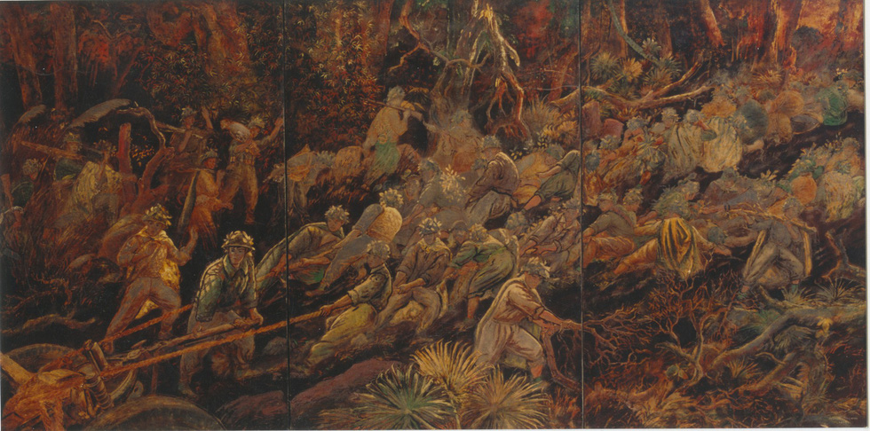 | Tác phẩm sơn mài 'Kéo pháo lên Điện Biên' của Dương Hướng Minh |