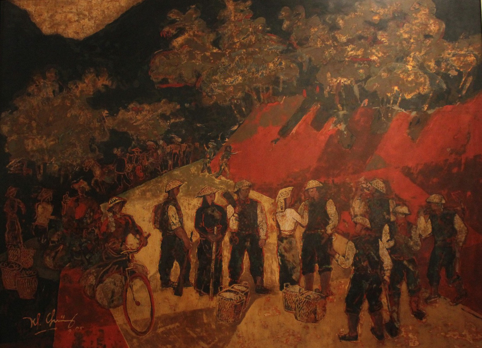 | Tác phẩm sơn mài Đường lên Điện Biên của Trần Khánh Chương sáng tác năm 2005 |
