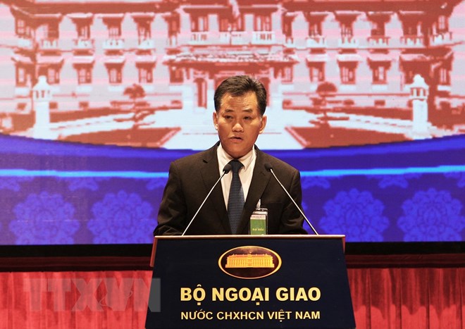 | Ông Đôn Tuấn Phong, Phó Chủ tịch phụ trách Liên hiệp các tổ chức hữu nghị Việt Nam phát biểu với chủ đề Đối ngoại nhân dân đóng góp tích cực và hiệu quả vào các hoạt động đối ngoại Đảng và ngoại giao Nhà nước. (Ảnh: Lâm Khánh/TTXVN) |