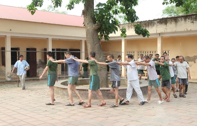 Các hoạt động thể dục, trị liệu nâng cao sức khỏe cho thương bệnh binh thần kinh. (Ảnh: TTXVN/Vietnam+)