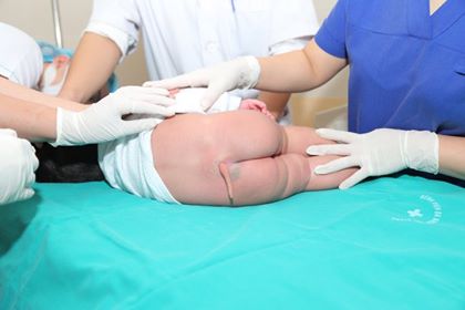 Được biết, bệnh nhân nữ Phạm D.G.H, 5 tháng tuổi, trú tại Lệ Chi - Gia Lâm - Hà Nội. Khi nhập viện trẻ tỉnh, hồng hào, môi hồng, mạch: 110l/p; Nhiệt độ: 37, nhịp thở: 45l/p, Cân nặng: 7kg.