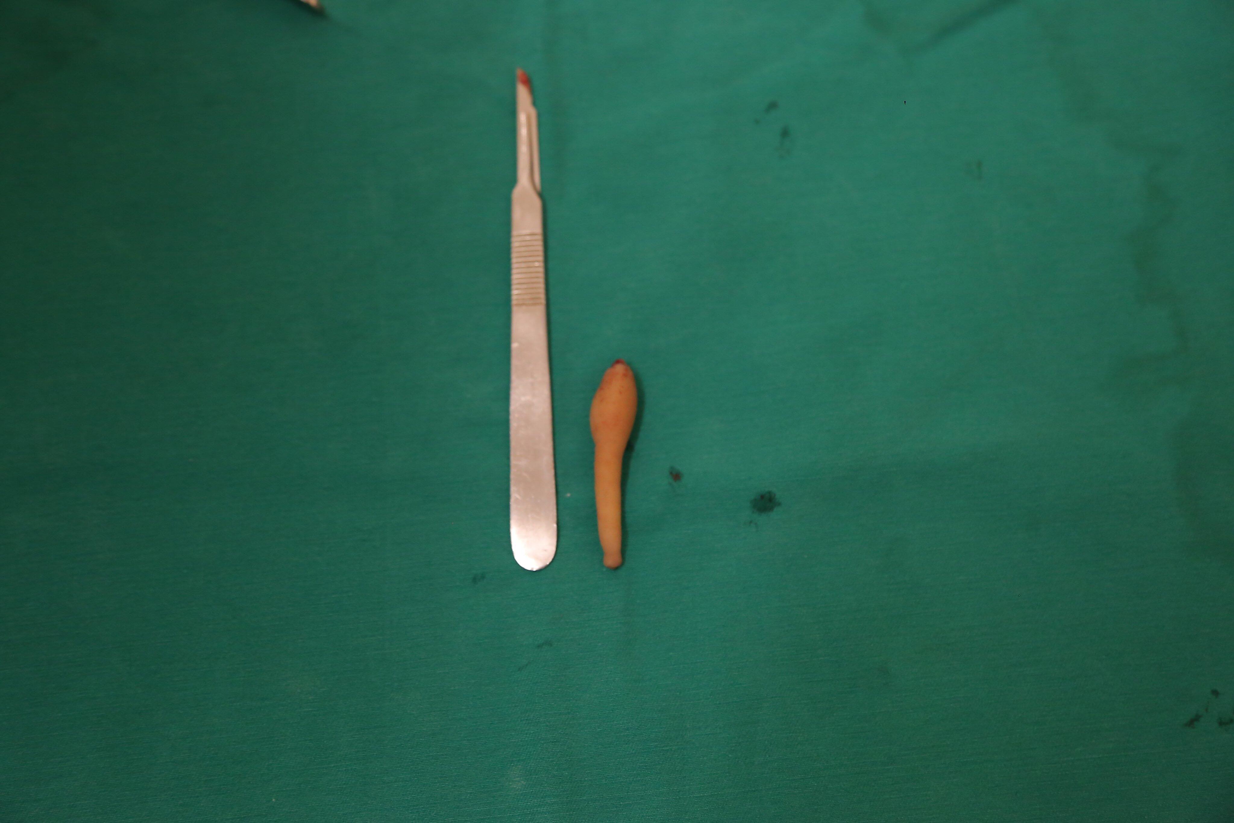 Đuôi còn bẩm sinh đã được phẫu thuật cắt bỏ thành công. - Ảnh: Trần Anh
