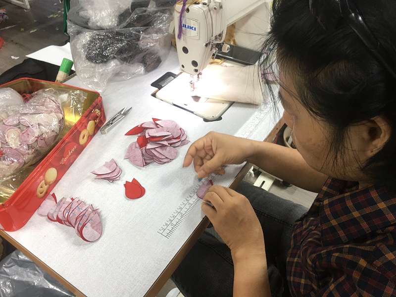 Đến với xưởng sản xuất Kym Việt, không âm thanh, không tiếng động chỉ có tiếng máy thoăn thoắt. Mỗi người một việc, họ chỉ giao tiếp với nhau thông qua những cử chỉ.