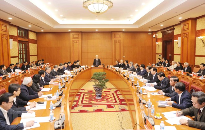 | Tổng Bí thư, Chủ tịch nước Nguyễn Phú Trọng, Trưởng Tiểu ban phát biểu kết luận phiên họp. (Ảnh: Phương Hoa/TTXVN) |