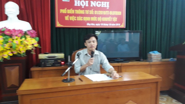 | Ông Nguyễn quang Huy phổ biến những quy định về xác định mức độ khuyết tật. |