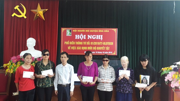 Trong dịp này, nhân kỉ niệm 89 năm ngày thành lập hội liên hiệp phụ nữ Việt Nam, hội người mù Ứng Hòa đã trao 6 phần quà đến các chị em phụ nữ khiếm thị có hoàn cảnh khó khăn, phụ nữ khiếm thị đang nuôi con nhỏ.