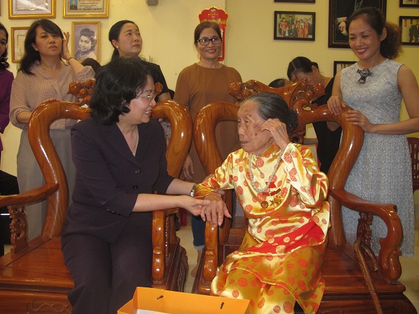 Phó Chủ tịch nước tặng quà Mẹ VNAH Trịnh Thị Lịch.