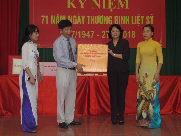 Tại Trung tâm Điều dưỡng Thương binh Lạng Giang, Phó Chủ tịch nước đã tặng 50 phần quà, mỗi phần quà trị giá 2 triệu đồng cho các thương, bệnh binh và phần quà trị giá 50 triệu đồng cho Trung tâm.