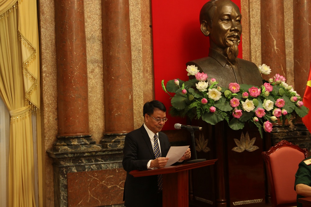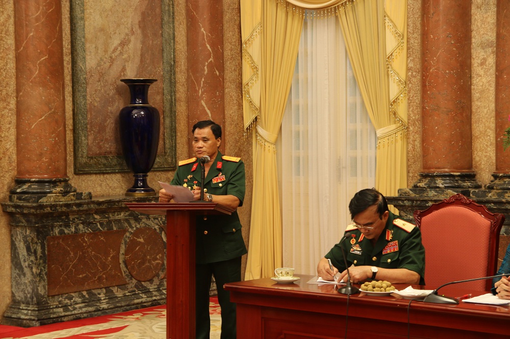 Thiếu tướng Lê Mã Lương báo cáo tình hình hoạt động của Hiệp hội