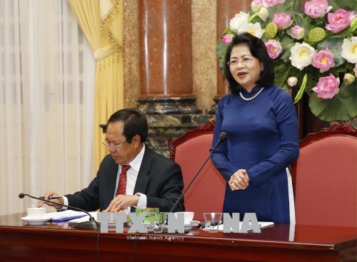| Phó Chủ tịch nước Đặng Thị Ngọc Thịnh phát biểu tại buổi tiếp. Ảnh: Lâm Khánh/TTXVN |