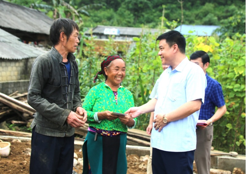 Bên cạnh đó, lãnh đạo động viên, thăm hỏi bà con sớm hoàn thiện nhà, ổn định cuộc sống. (Ảnh: Nguồn Báo Hà Giang)