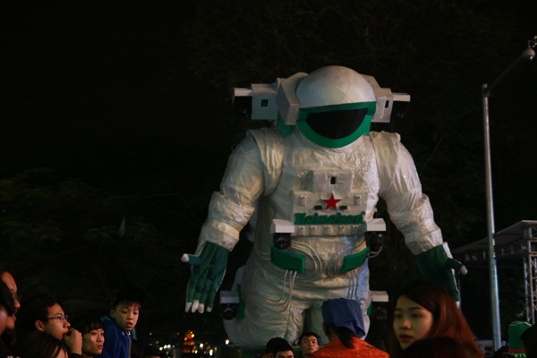 Năm nay, bữa tiệc càng thêm hấp dẫn với sự “góp vui” của Heineken Giant Spaceman - một nhà du hành khổng lồ cao đến 8m. Bên cạnh đó, bữa tiệc càng được khuấy động với sự dẫn dắt tài tình của MC Nguyên Khang, DJ Nimbia, với các tiết mục âm nhạc đặc sắc đến từ nhiều ca sĩ khách mời nổi tiếng như: Thu Minh, Tuấn Hưng… Tất cả đã tạo nên một bữa tiệc đón năm mới hết sức tuyệt vời, không chỉ trong mắt người dân thủ đô mà còn ấn tượng với cả khách du lịch nước ngoài. Sau màn đếm ngược là những chùm pháo hoa bừng sáng bầu trời thủ đô, mọi người trao cho nhau những câu chúc tuyệt vời nhất để chào đón một năm mới đến.
