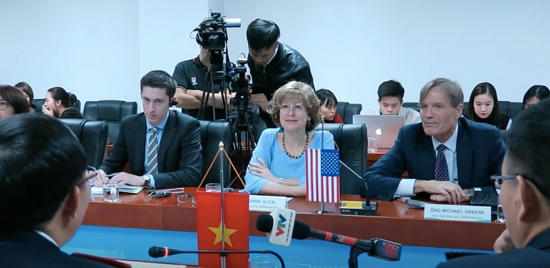 | Phó Giám đốc toàn cầu của USAID Bonnie Glick và Tổng Cục trưởng Tổng cục Hải quan Nguyễn Văn Cẩn thảo luận về hợp tác giữa Việt Nam và Hoa Kỳ trong lĩnh vực tạo thuận lợi thương mại |
