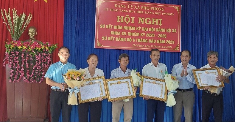 Đảng ủy xã Phổ Phong khen thưởng tập thể, cá nhân có thành tích xuất sắc thực hiện Nghị quyết Đại hội Đảng bộ xã.