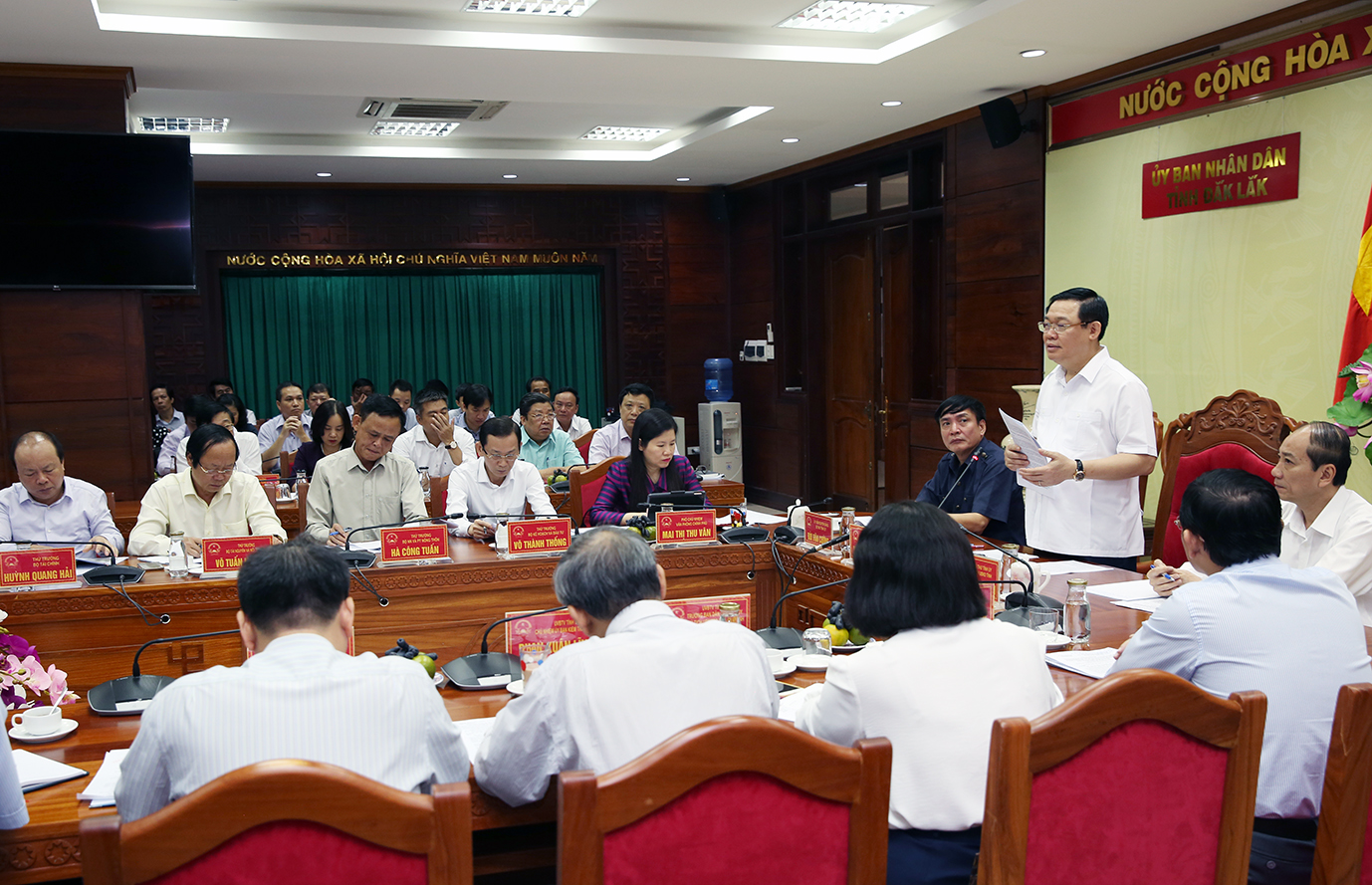 Tại cuộc họp, Phó Thủ tướng Vương Đình Huệ cũng cho ý kiến vào các kiến nghị cụ thể của Đắk Lắk về bố trí vốn đầu tư cơ sở hạ tầng, bố trí lại dân cư,...