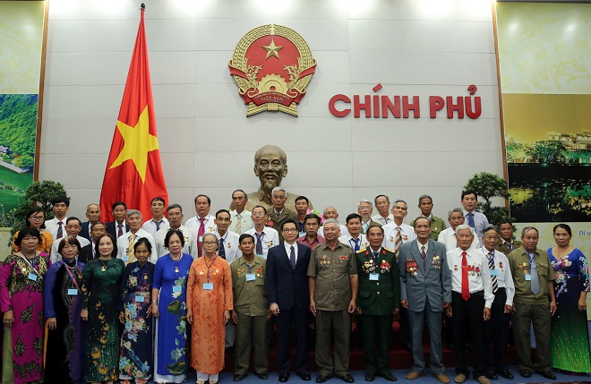| Phó Thủ tướng Vũ Đức Đam và đoàn người có công tỉnh Khánh Hòa. Ảnh:VGP |