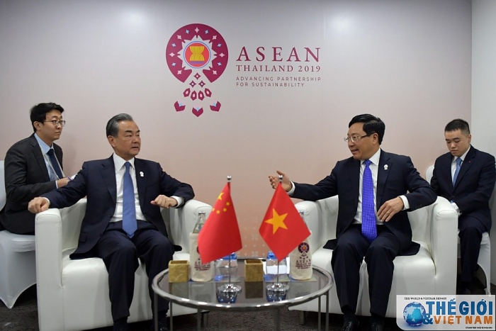 Trong khuôn khổ Hội nghị Bộ trưởng Ngoại giao ASEAN lần thứ 52 tại Bangkok, Thái Lan, ngày 1/8, Phó Thủ tướng, Bộ trưởng Phạm Bình Minh đã gặp Uỷ viên Quốc vụ, Bộ trưởng Ngoại giao Trung Quốc Vương Nghị.