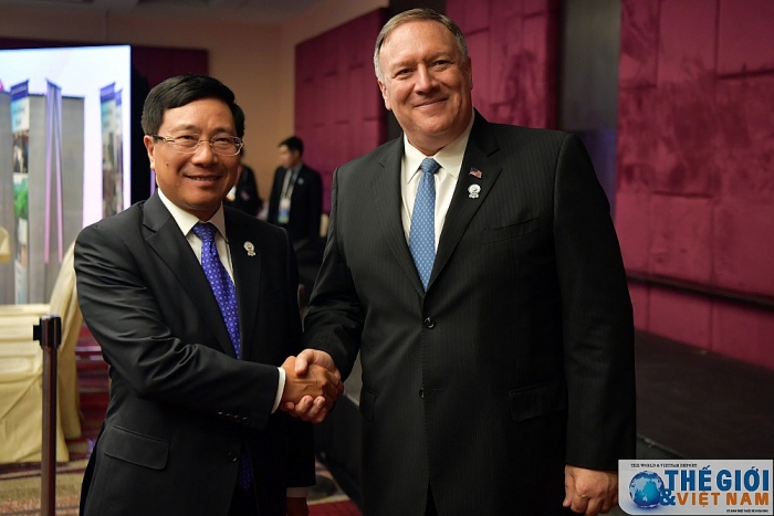 Phó Thủ tướng Phạm Bình Minh và Bộ trưởng Ngoại giao Mỹ Mike Pompeo.